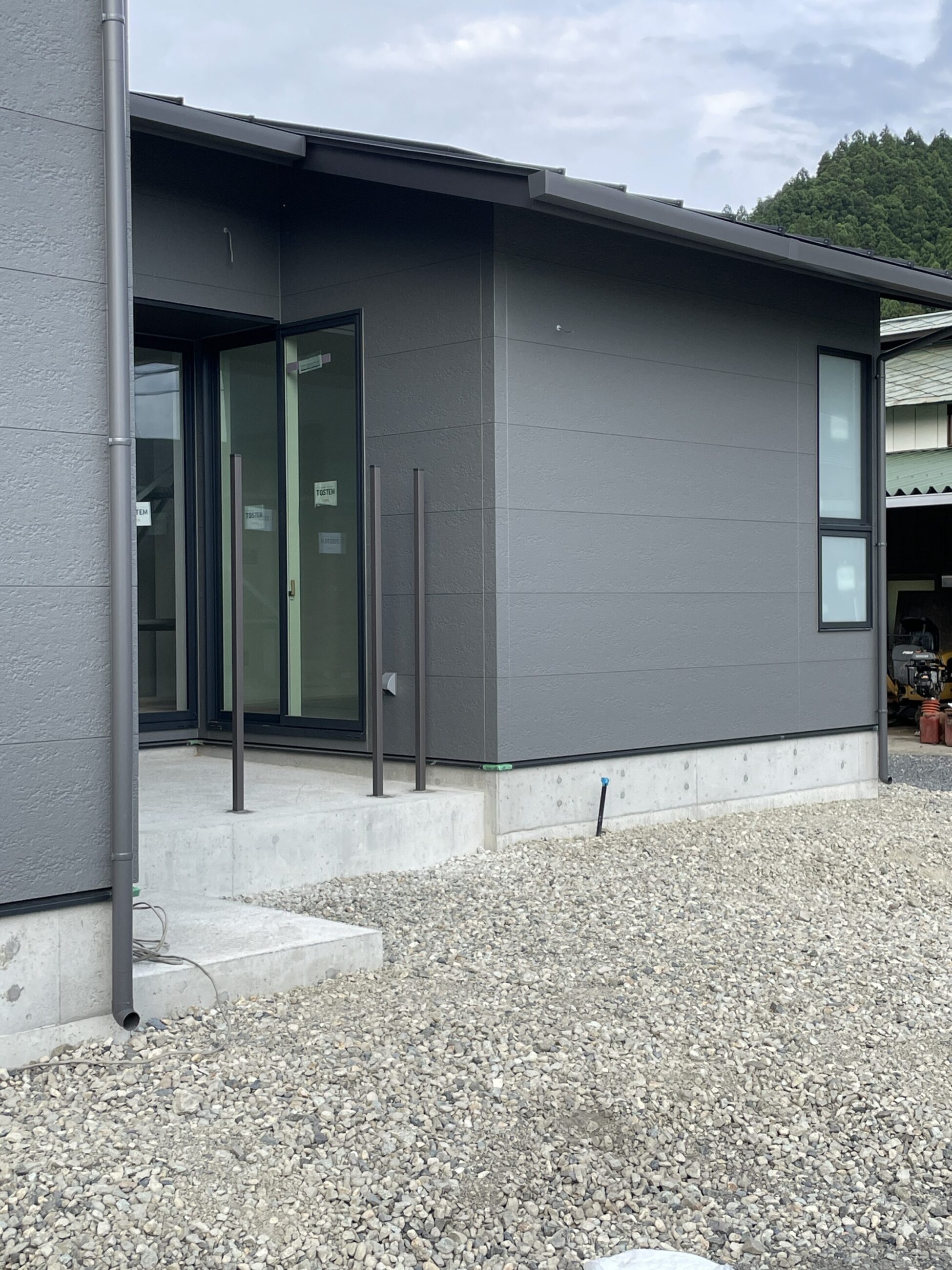 タイルデッキには目隠しフェンスの柱が付き、タイル工事完了後に目隠しフェンスの板が取り付けられます。