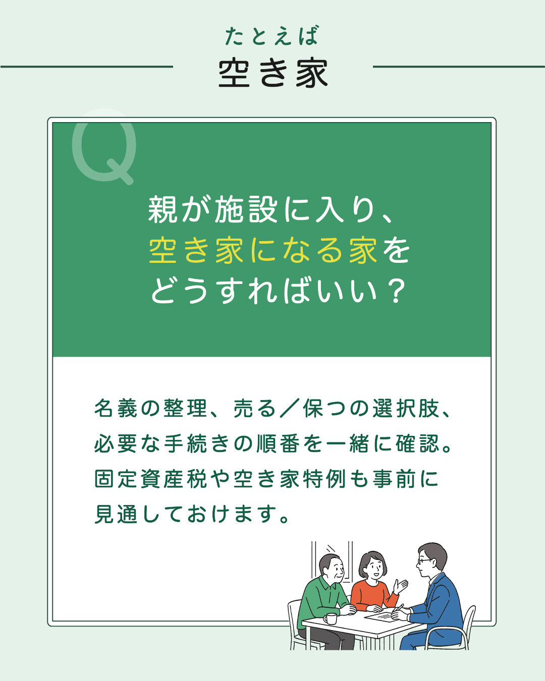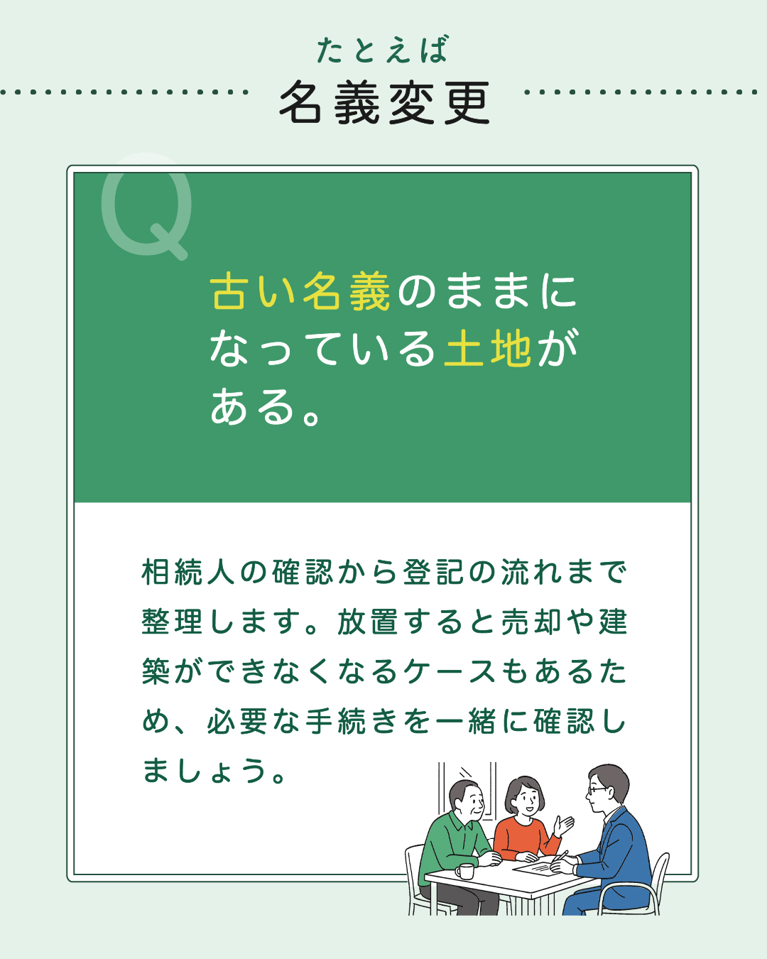 相続の準備や、名義変更・遺産分割・空き家の活用など、