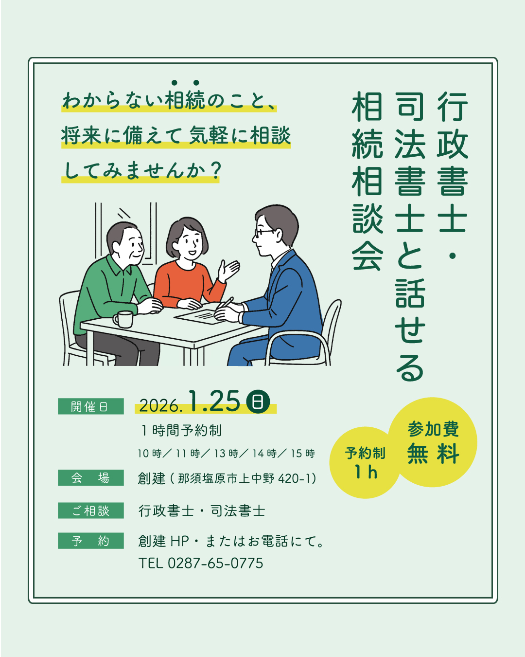 【無料】司法書士と話せる 相続相談会 2026.1.25(日)